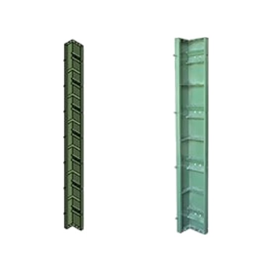 | 3000937 | ESCUADRAS.LIGERA 150x200x3000 MM | 28 KG | Se coloca en la parte interior de la esquina que se desee realizar, encofrando 20 cm por un lado y 15cm por el otro, ya que en la parte exterior perdemos 5cm en uno de los paneles. También se utiliza para realizar pilares retallados para retalles pequeños de 5,10 o 15 cm, utilizando en tal caso 2 escuadras por retalle |
